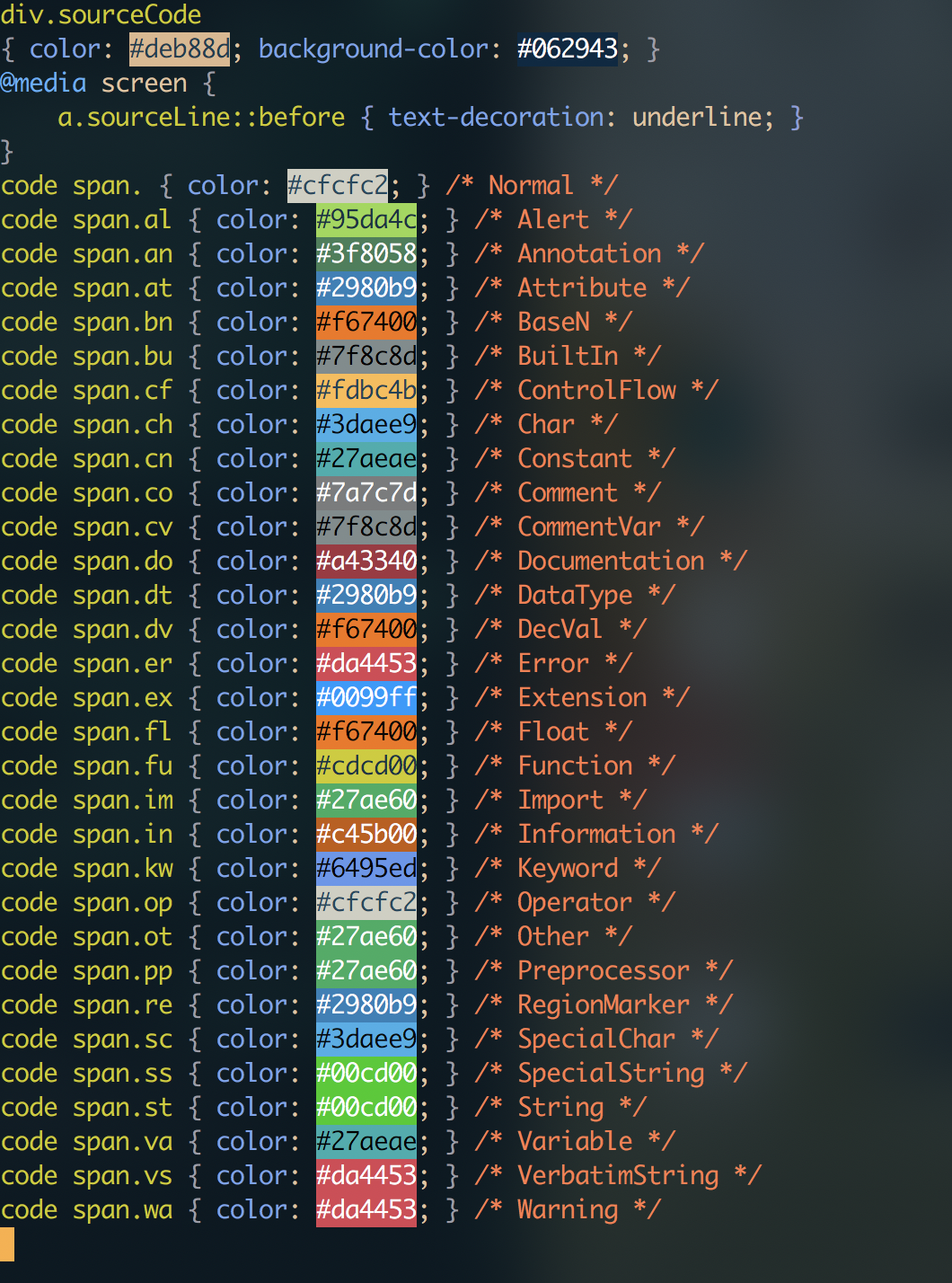 ...Then take an arbitrary markdown file with a code block and convert it to HTML with our custom theme:
