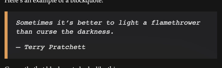 > -- Terry PratchettHere’s the final result for the blockquote: