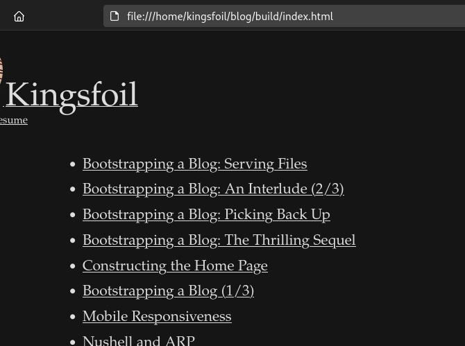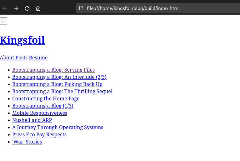 . Additionally, instead of building a posts.html file we’ll treat index.html file as, well… the index, and put it at the root of build/.